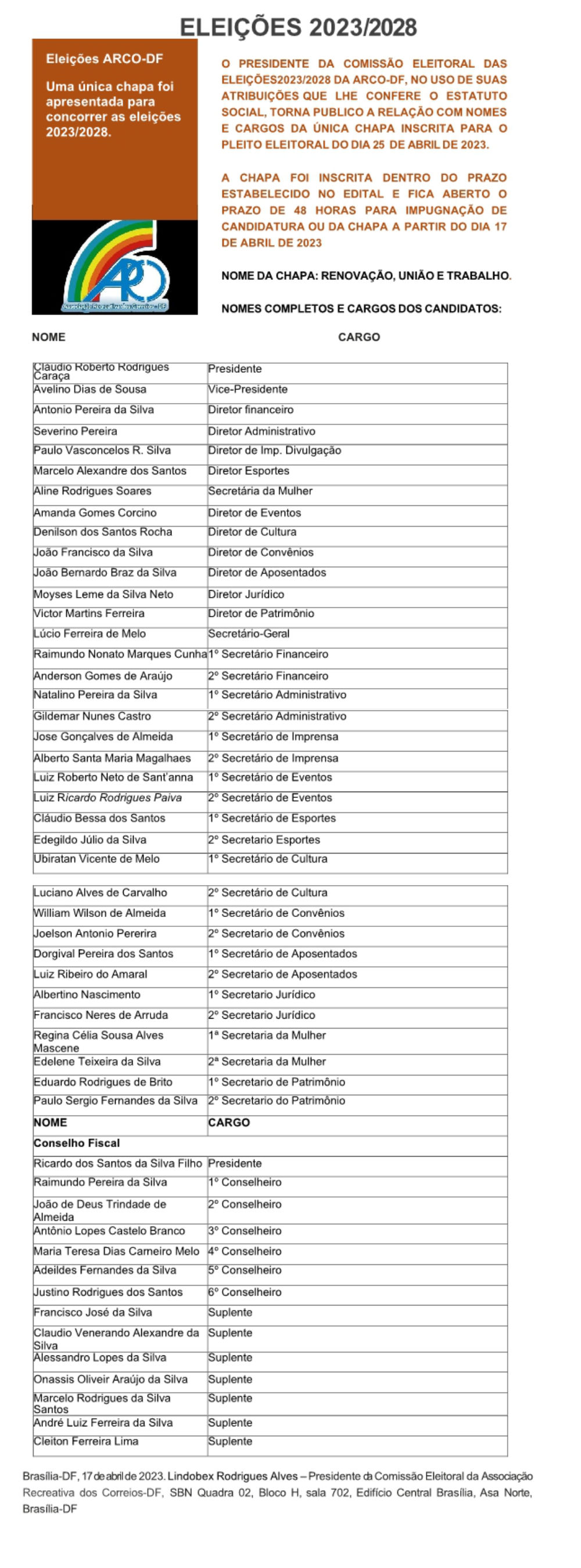 Eleícões Arco Brasília DF 2023